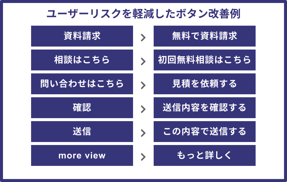 • CTAボタンにその後どうなるかを明記(例:「30秒で完了」「無料見積をメールでお届け」)